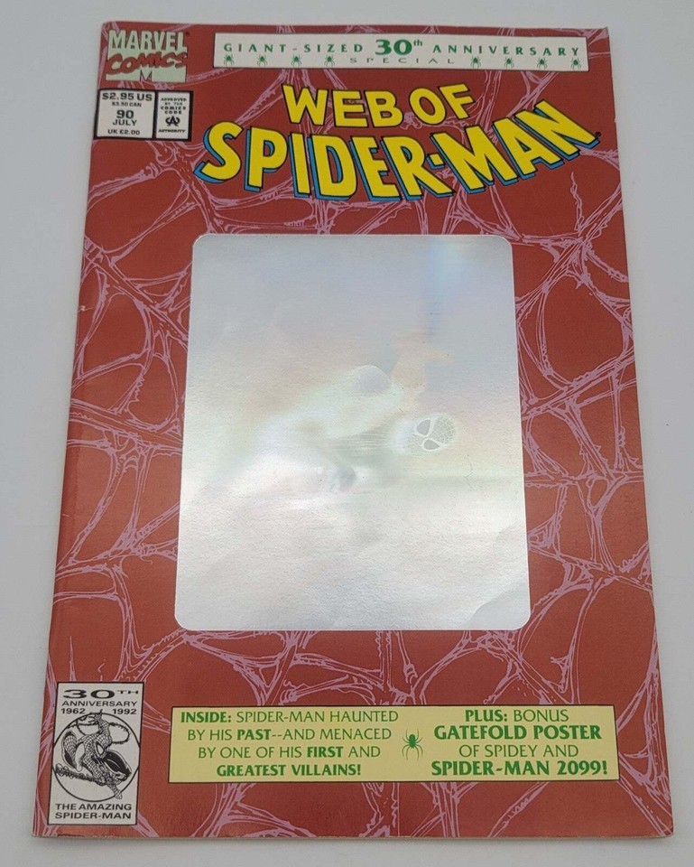 Web of Spider Man Comic No. 90, Jul 30th Anniversary Silver Holo and Poster