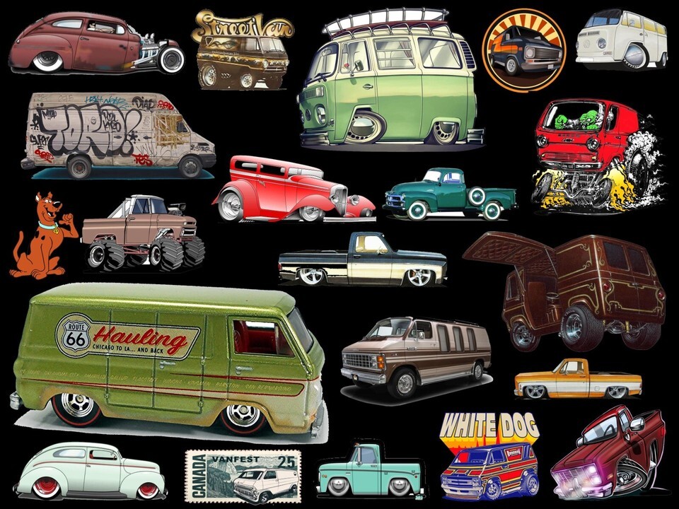 Vanfest Retro Vans Trucks VW C-10 fun easy to peel stickers in a