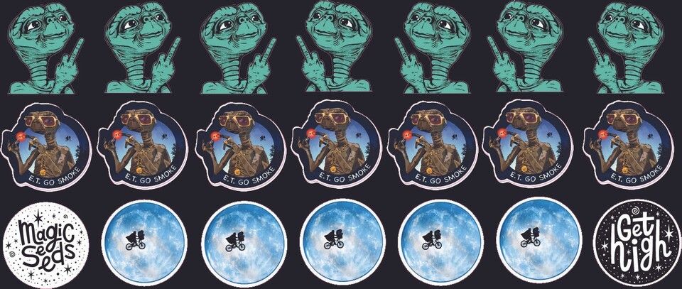 21 Alien E.T. Get High 420 Magic Seeds Weed Fun Cool Vinyl Sticker Pack