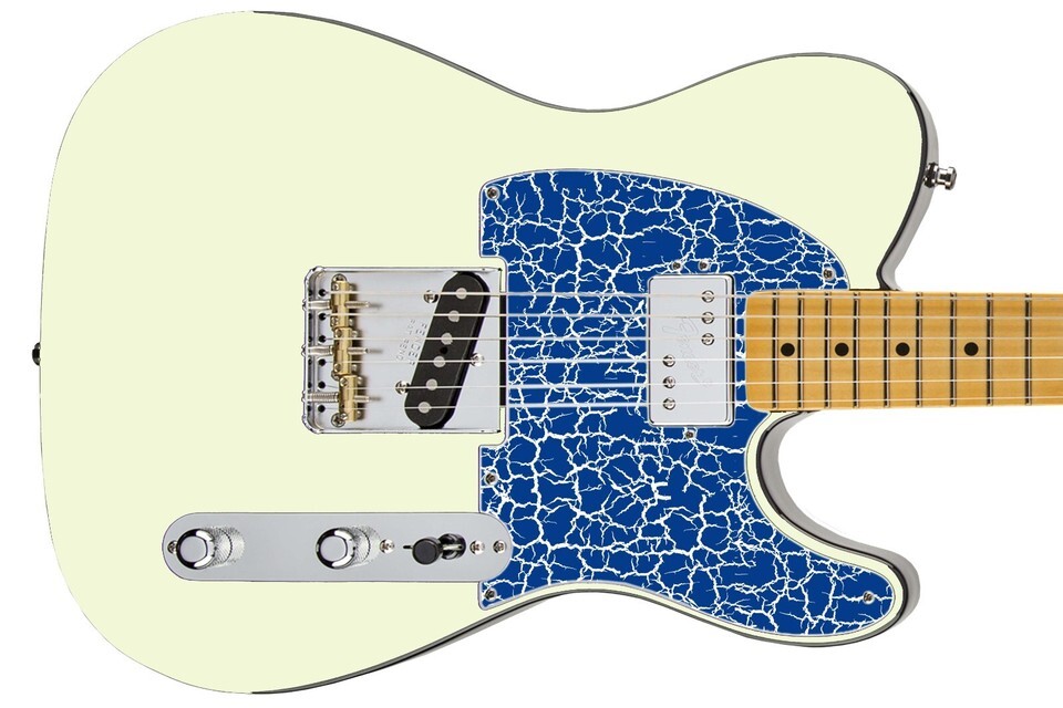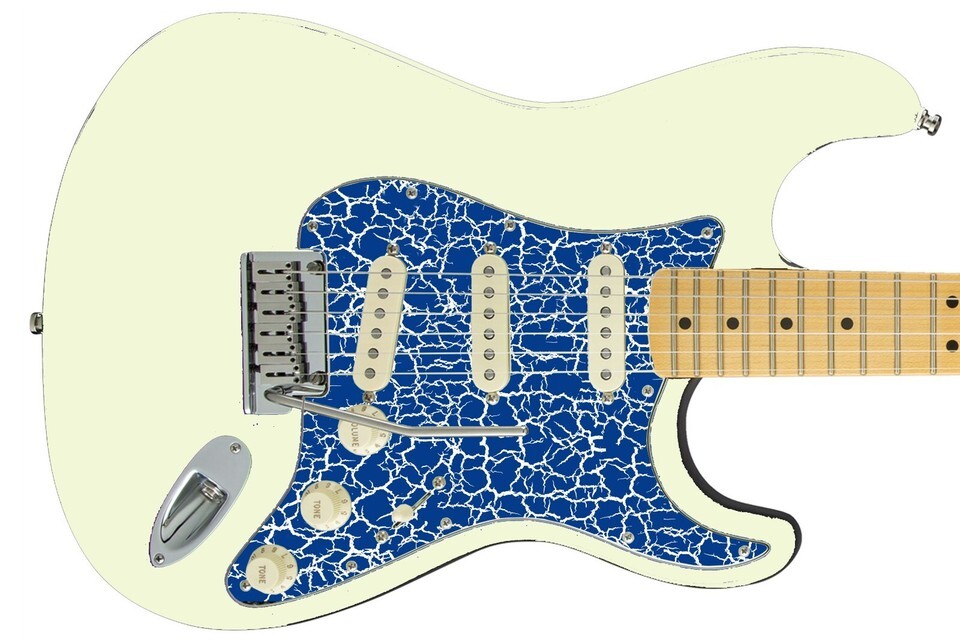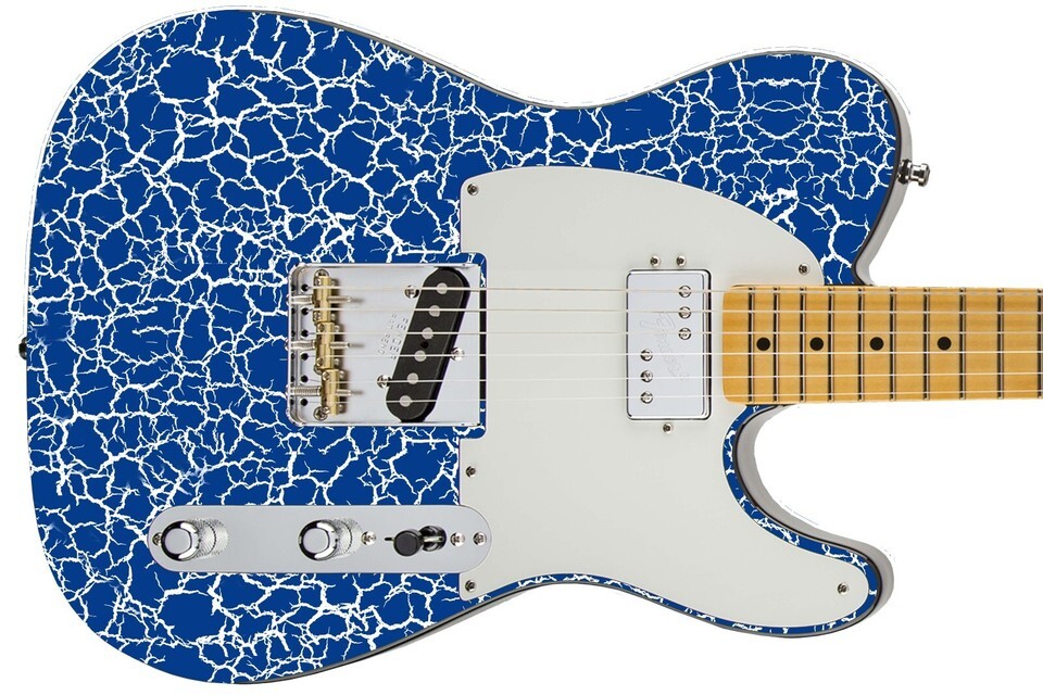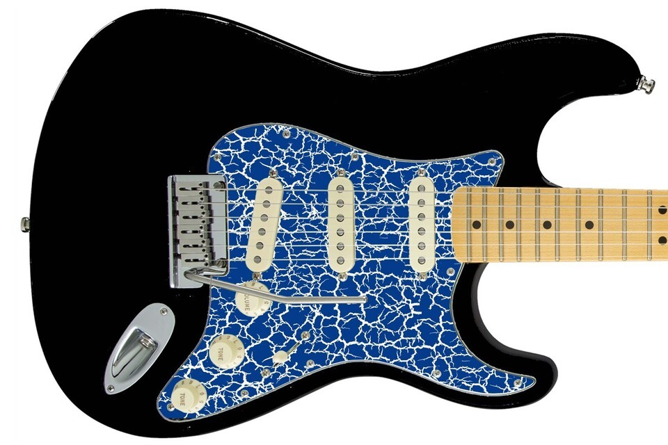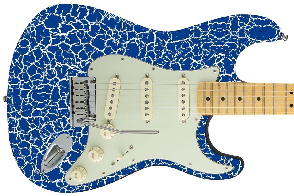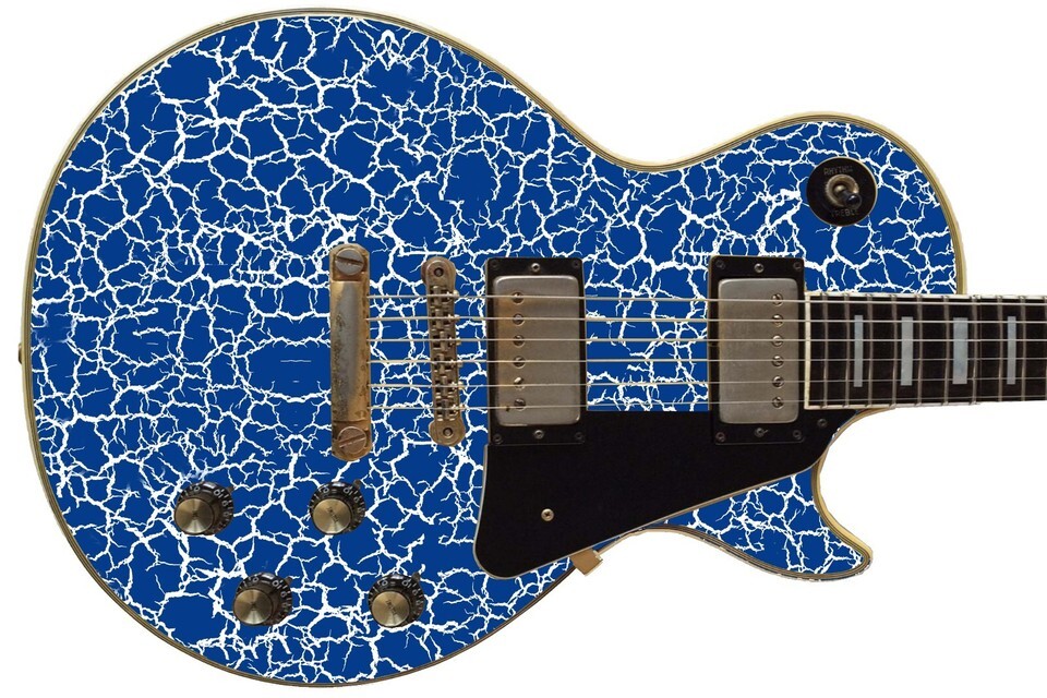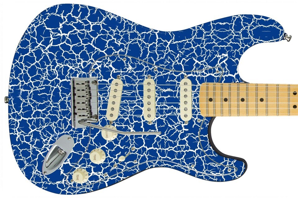 Guitar Skin Wrap Axe Pick guard Headstock Bass Reface - Blue White Crackle 1219