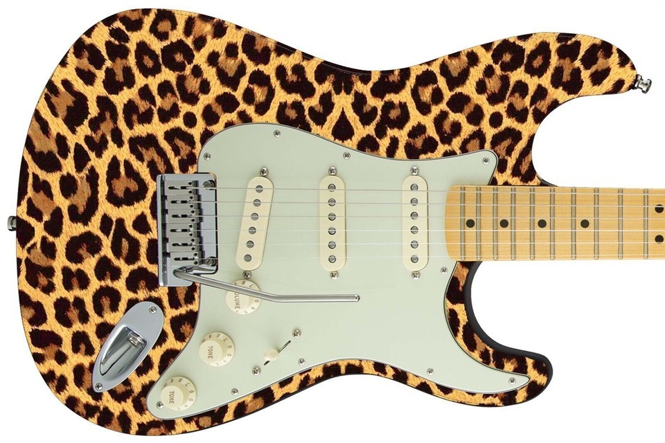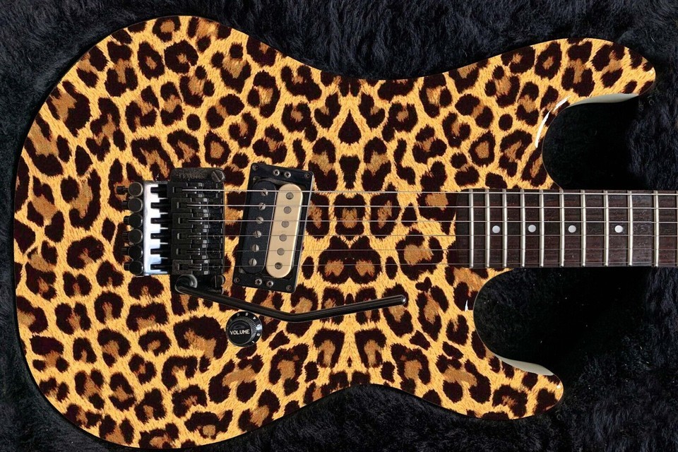 Guitar Wrap Skin Axe Re-Skin Iconic 80's Metal Rock Paul Stanley Leopard Print F