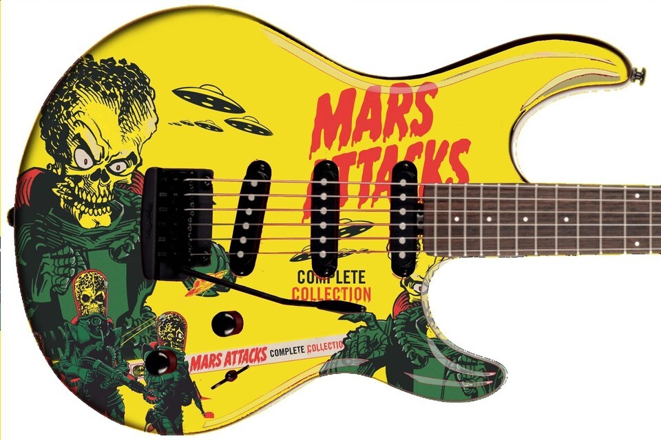 Guitar Skin Axe Wrap Reskin Bass Reface Electric Art Cover DIY Mars Attacks 1727