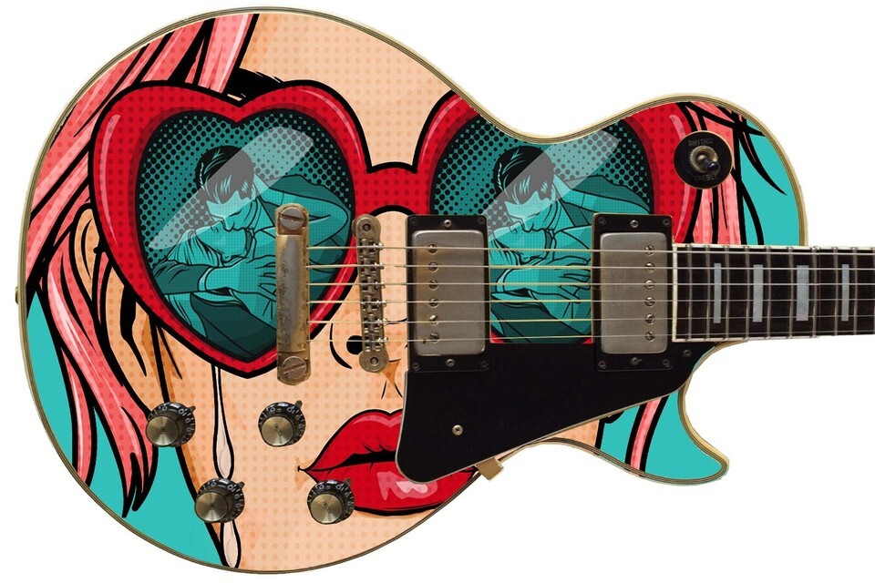 Guitar Skin Wrap Axe Re-Skin Pop Art Rock Dirty Little Secret Groupie Girl 1218