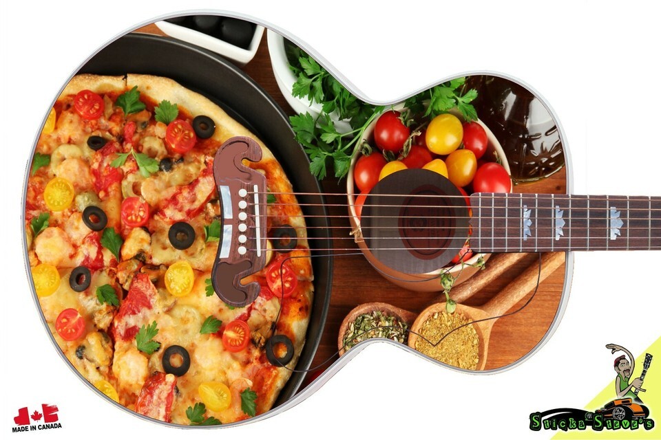 Guitar Skin Axe Wrap Re-skin Vinyl Righty Jumbo Acoustic Fresh Pizza Face 020