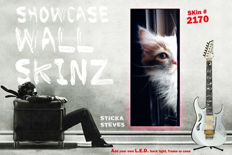 Utilize our Showcase Skinz to further customize your display cabinets, alcoves, guitar case, coffee table or just Sticka it to your wall.