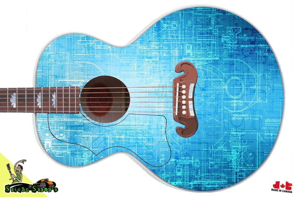 Jumbo Acoustic Guitar Skin Axe Wrap Body Reface Left / Right Art Schematics 047