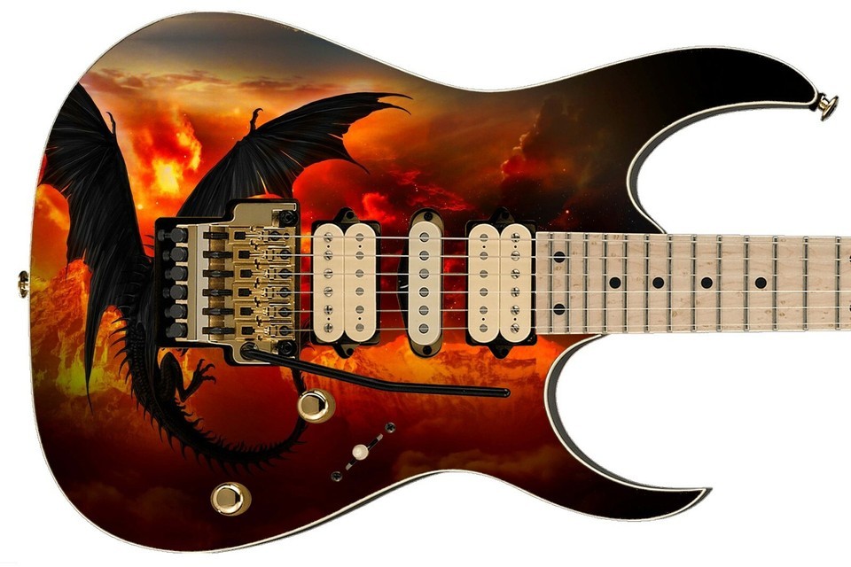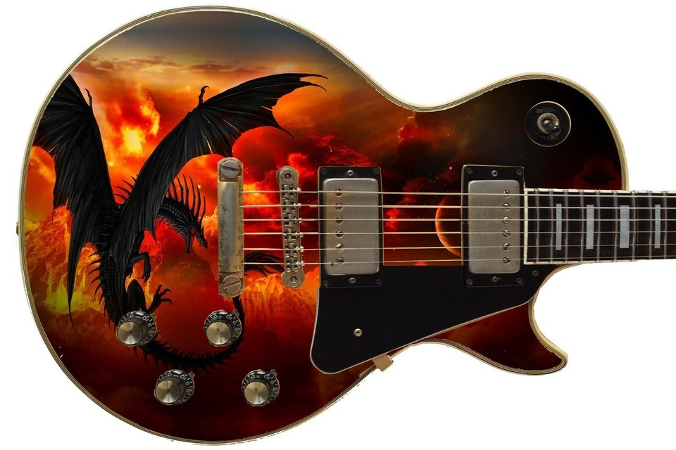Guitar Skin Axe Wrap Re-skin Bass Reface DIY Fire Red Dragons in the Sky 700