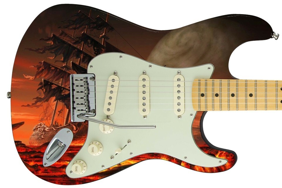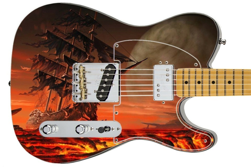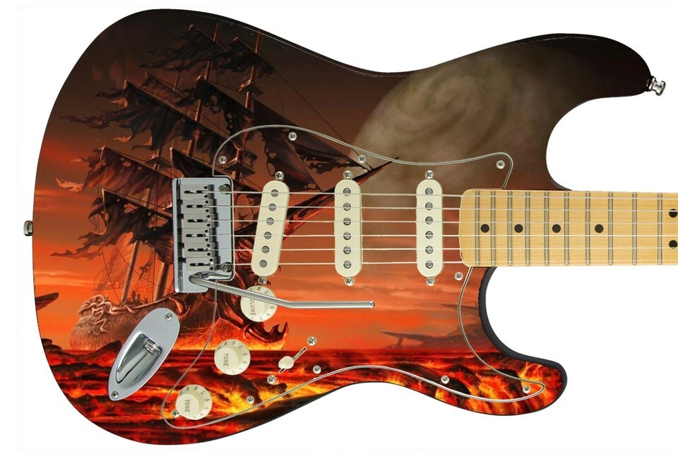 Guitar Skin Axe Wrap Re-skin Bass Reface DIY Pirate Ghost Ship Electric 276