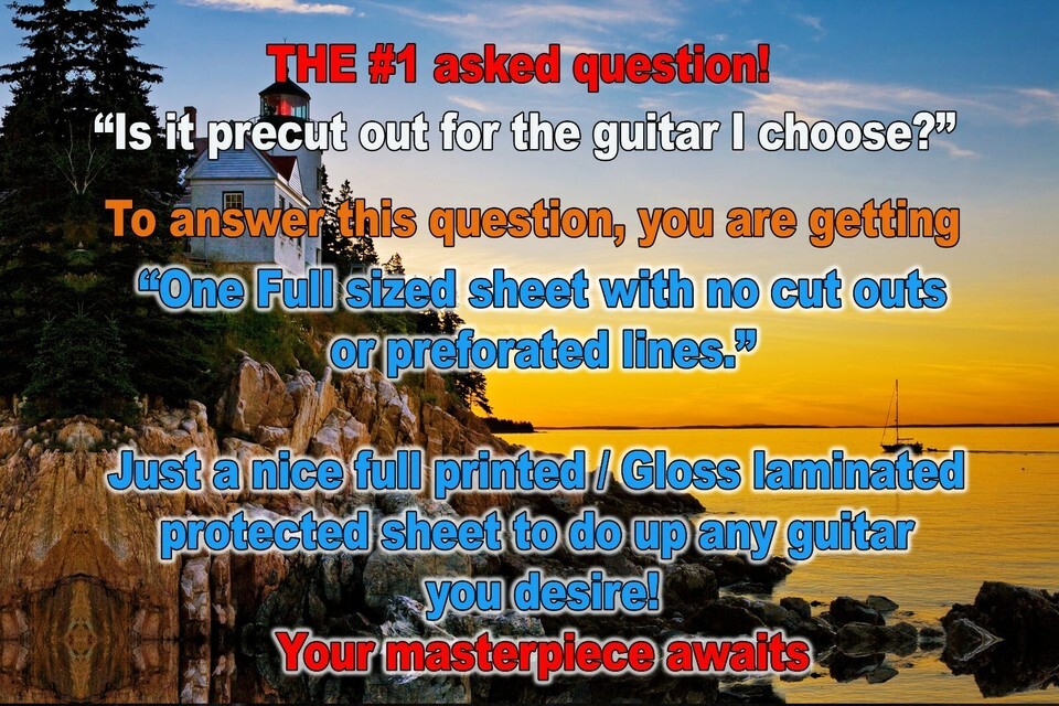 You are getting one sheet symmetrically sized to fit, up to 21" (Max), guitar body wrap vinyl sheet that will cover the front side of your guitar for a Right Handed Player.