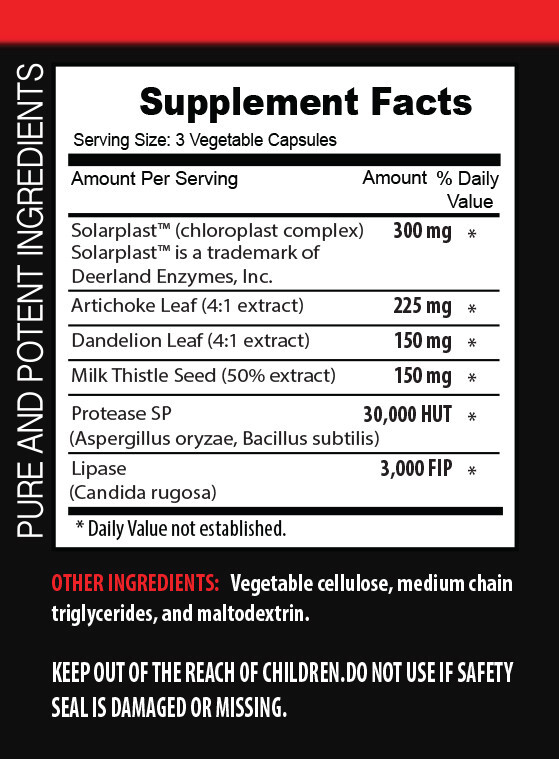 Liver Detoxifier Formula features Solarplast which is a plant based proprietary ingredient from Deerland Enzymes, Inc. The liver support properties of this powerful ingredient are derived from chloroplasts. Chloroplasts are components of plant cells which are heavily involved in energy production from photosynthesis. Solarplast uses chloroplast from spinach which is uniquely capable of producing an enzyme known as glutathione reductase. This enzyme is responsible for converting glutathione disulfide into its useable sulfhydryl form, glutathione. 2 Glutathione is one of the most important antioxidants in the body, and an essential component in protecting the liver from the damages of oxidation.