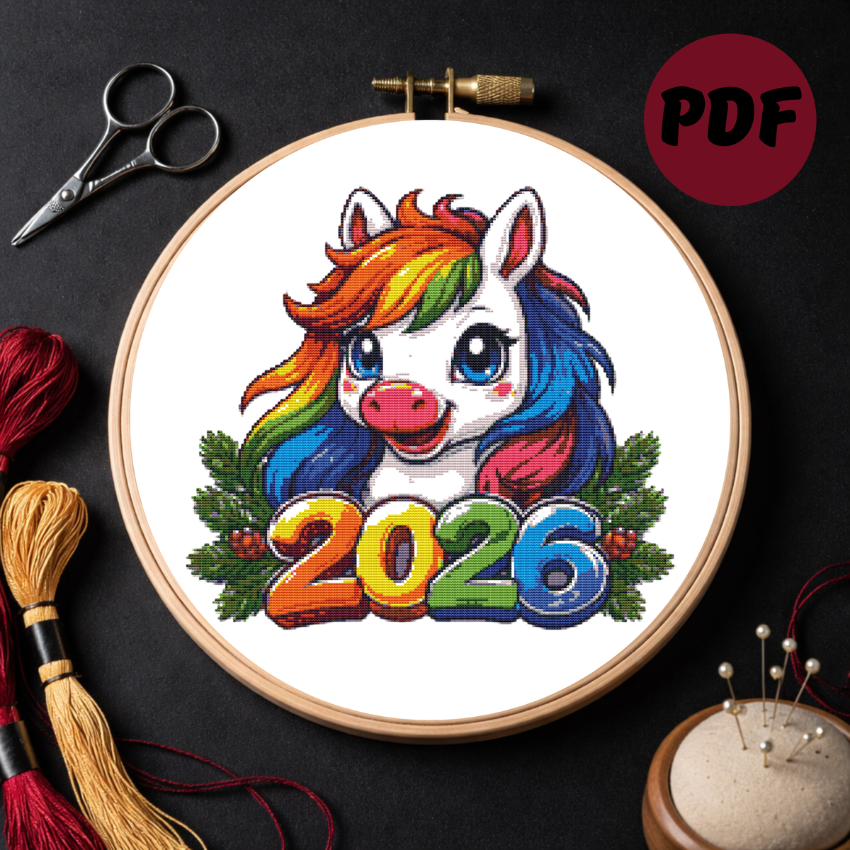 Year of the Beautiful Horse 2026 - Cross stitch pattern PDF - Instant download