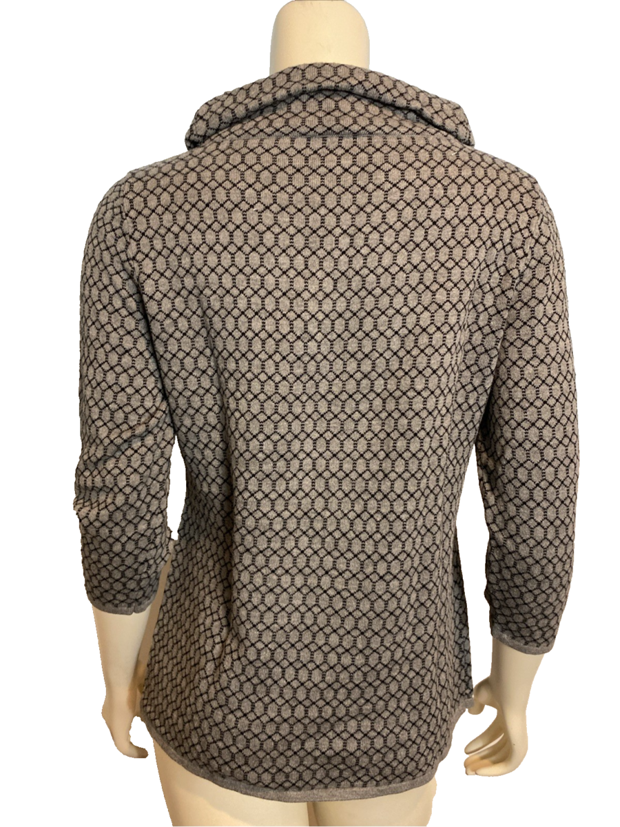 Talbots Gray and Navy Geometric Print Cowl Neck 3/4 Sleeve Top Size S