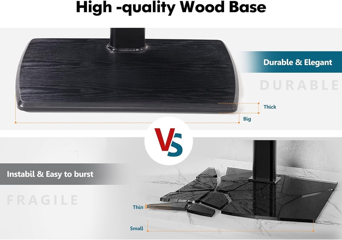 Robust Material: Heavy-duty steel tube and thick wood base provide exceptional stability and a stylish look, supporting TVs up to 40kg. Safety lock to prevent accidental movement or tampering