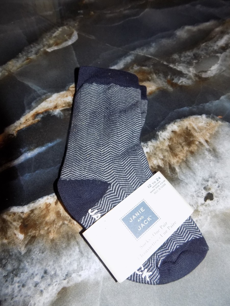 JANIE AND JACK BLUE/WHITE HERRINGBONE SOCKS 12 TO 24 MONTHS SHOE SIZE 4-6 NEW