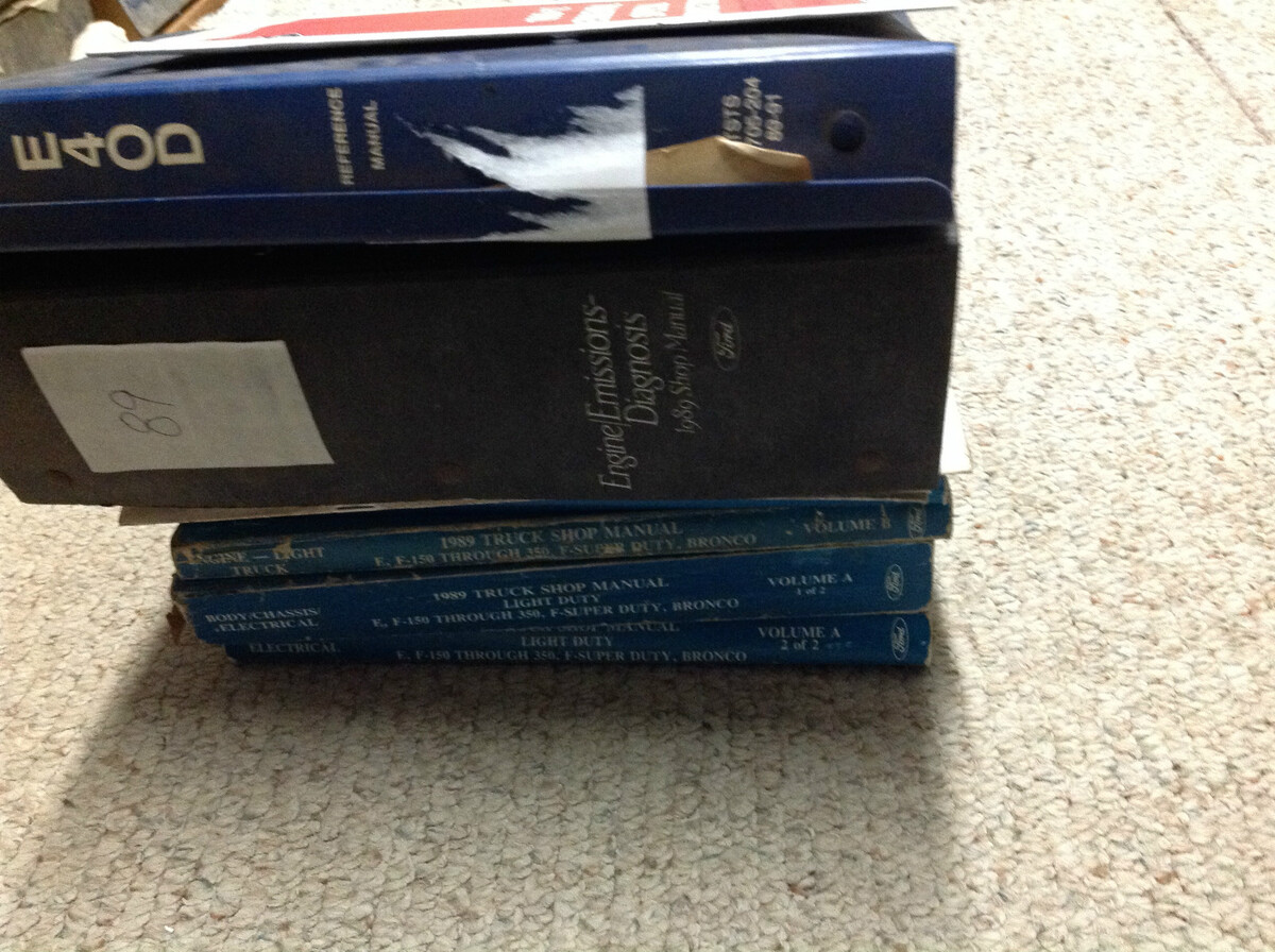 Factory 1989 Ford F-150/250/350/BRONCO/F-Super Duty/Econoline, BODY/CHASSIS/ELECTRICAL SERVICE MANUALS/ENGINE SERVICE MANUAL, PRE DELIVERY MANUAL,TRAINING MANUALS, SPECIAL TOOLS INSTRUCTION MANUAL, ENGINE EMISSION FACTS BOOKS SUMMARY MANUALS, POWERTRAIN EMISSION CONTROL DIAGNOSIS MANUAL, TRANSMISSION REFERENCE MANUAL