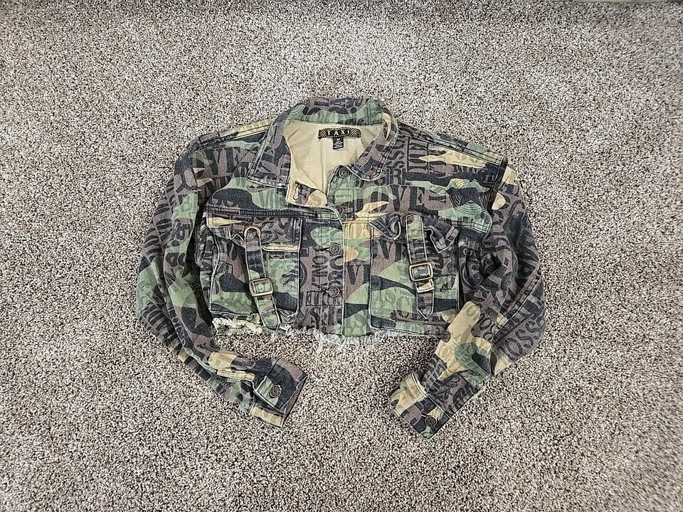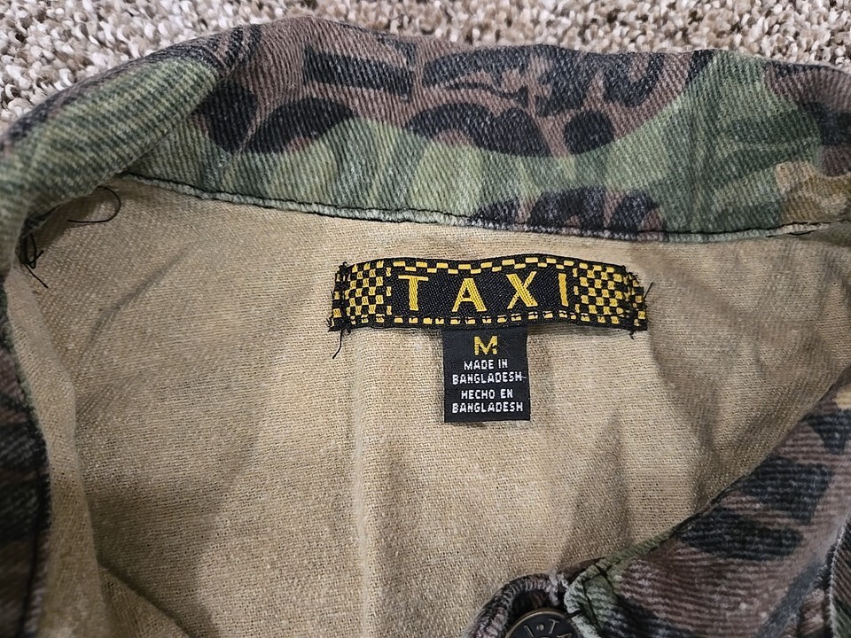 Taxi Vtg 90s Cropped Camo Denim Jacket Womans Sz Medium Military Hip Hop Grunge