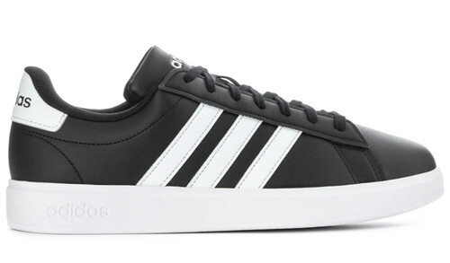 The Adidas Grand Court 2.0 Cloud White Black Stripe sneakers in size 5 for men are designed for tennis and outdoor sports. With a classic and sporty style, these low-top shoes feature a sleek lace-up closure and a pattern of black stripes on a white background. Made by the reputable brand Adidas, these athletic shoes are perfect for running and jogging during any season. The combination of comfort and style make them a versatile choice for active individuals looking for a reliable pair of sneakers.