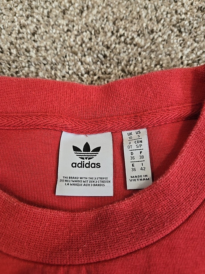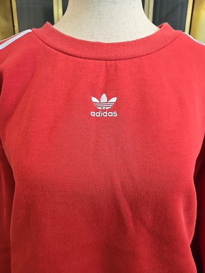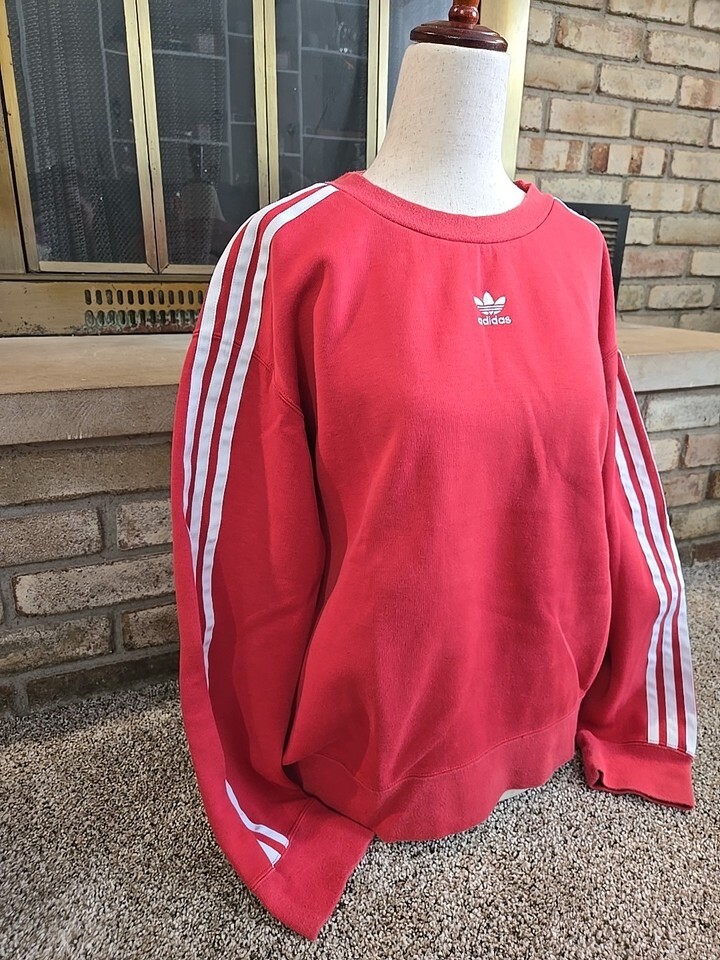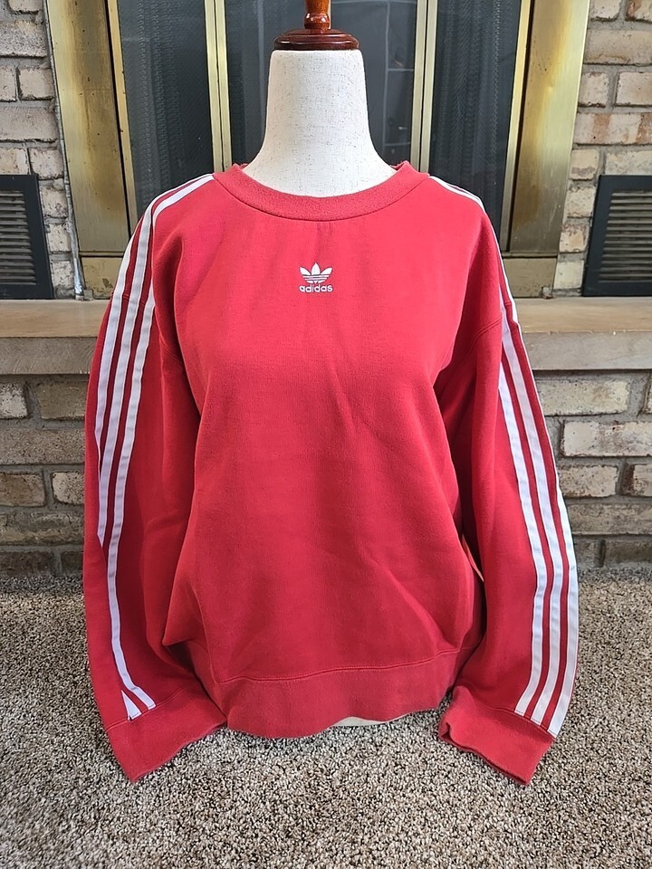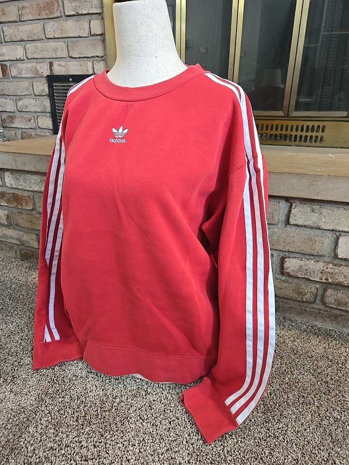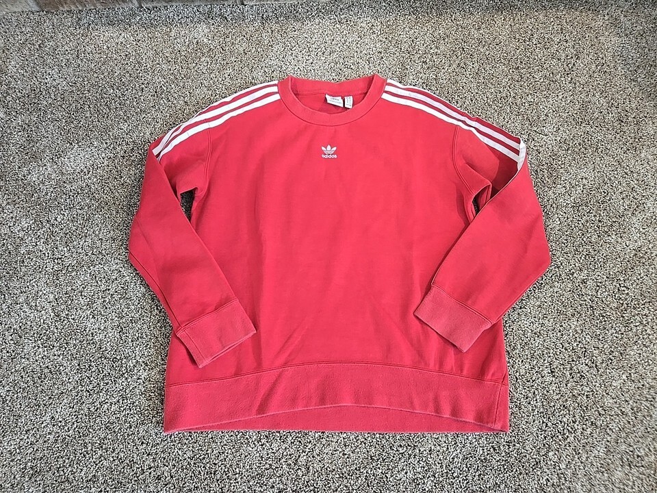 Adidas Center Logo 3 Stripe Oversized Crewneck Sweatshirt Womans Sz Small Coral