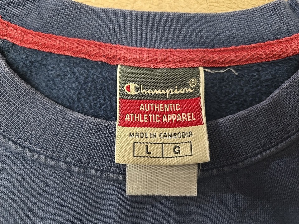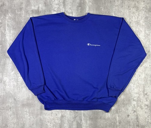 Champion Vtg Crewneck Sweatshirt Mens Size Large Blue Embossed Sports