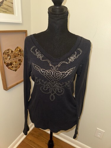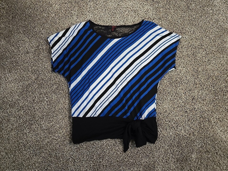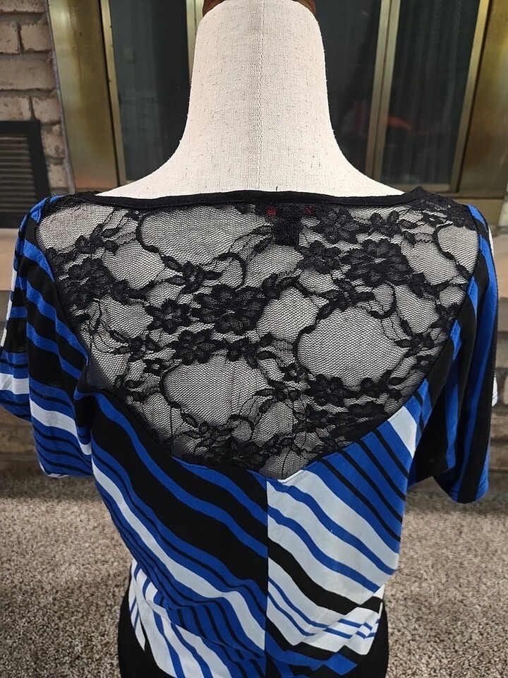 Bongo Brand Y2K Dolman Lace Back Top Womans Sz Small Retro Bratzcore Blue Black