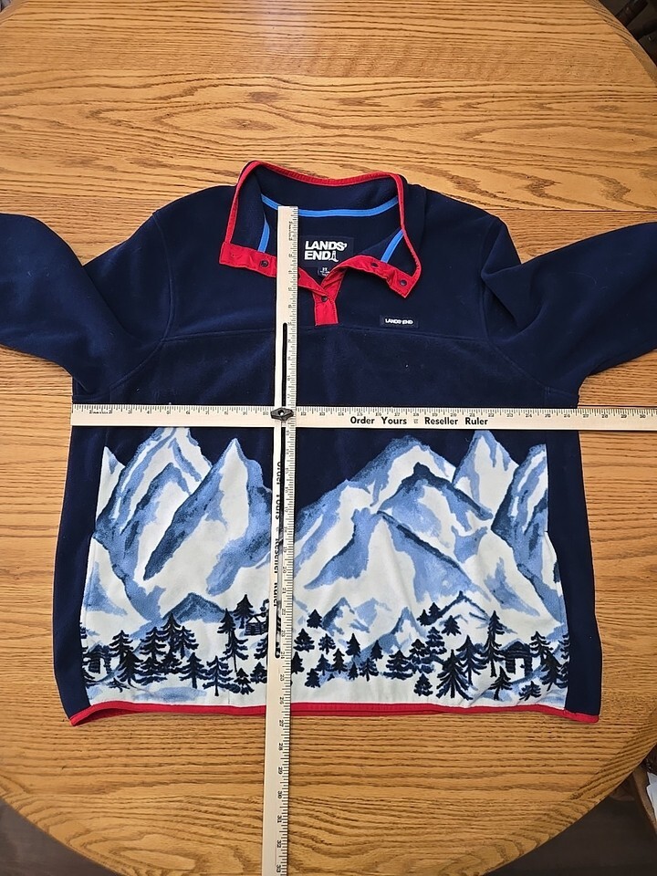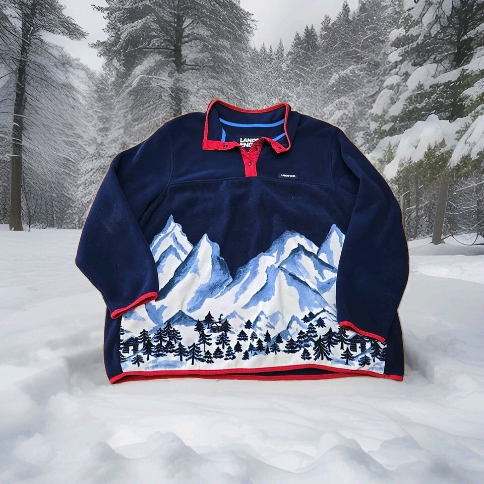 Lands End Pullover Fleece Snow Mountains Mens Size XL Outdoor Hiking Trails