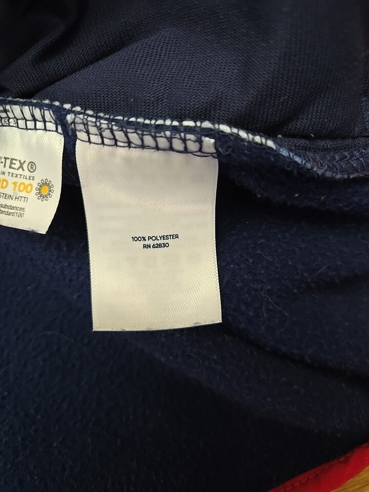 The Lands' End Pullover Fleece in Men's Size XL is a stylish and functional outdoor sweatshirt perfect for hiking trails. Featuring a snowy mountain scenery pattern, this pullover has a collared neckline, long sleeves, and snap closure. Made with cozy fleece fabric in a blue color, it also includes a logo accent and pockets for added convenience. Machine washable and designed for regular fit, this sweatshirt is suitable for winter, fall, and spring seasons, making it ideal for outdoor activities like walking, hiking, and running jogging. Perfect for those who enjoy the outdoors and want to stay comfortable and stylish during their adventures.
