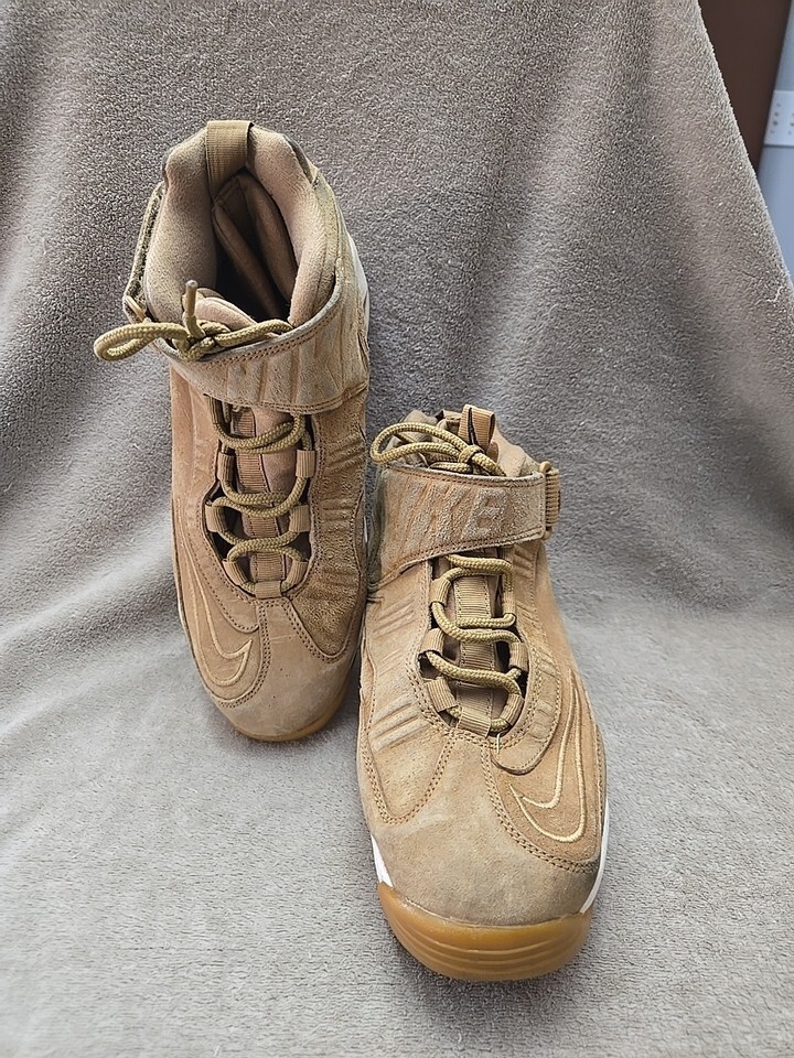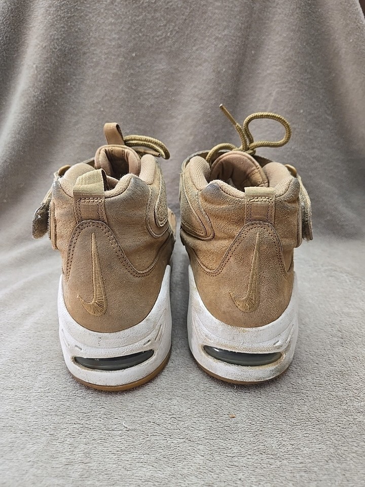 The Nike Air Max Griffey 1 Shoes in Flax Wheat/Sail White are a stylish and comfortable athletic sneaker designed for men in size 8.5. Featuring a lace-up closure, mid-top shoe shaft style, and rubber outsole, these shoes are suitable for various occasions including sports like basketball. The solid brown color with flax upper material and foam insole make them versatile for all seasons. With the iconic Nike Air Max Griffey design and athletic theme, these shoes are a fashionable and functional addition to any sports enthusiast's wardrobe.