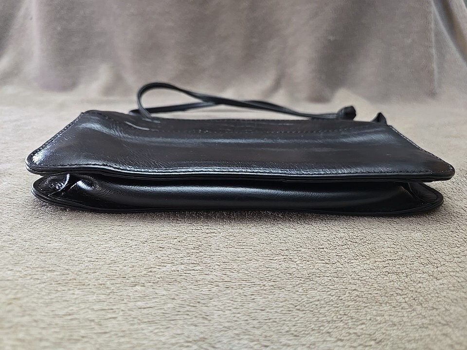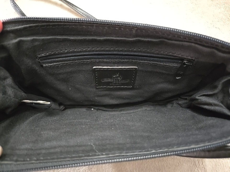 The interior is lined with black fabric and includes pockets to keep your essentials organized. The bag also has a comfortable faux leather strap for easy shoulder wear. Whether you're running errands in the city or attending a casual event, this shoulder bag is a classic and versatile choice.