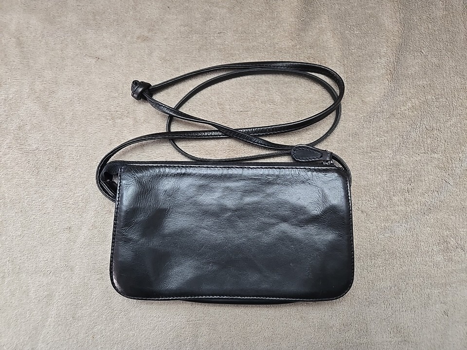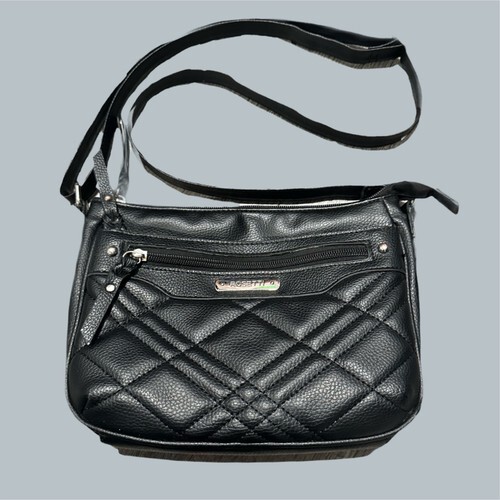Black Faux Leather Shoulder Bag Zip, Pockets, Siver Hardware