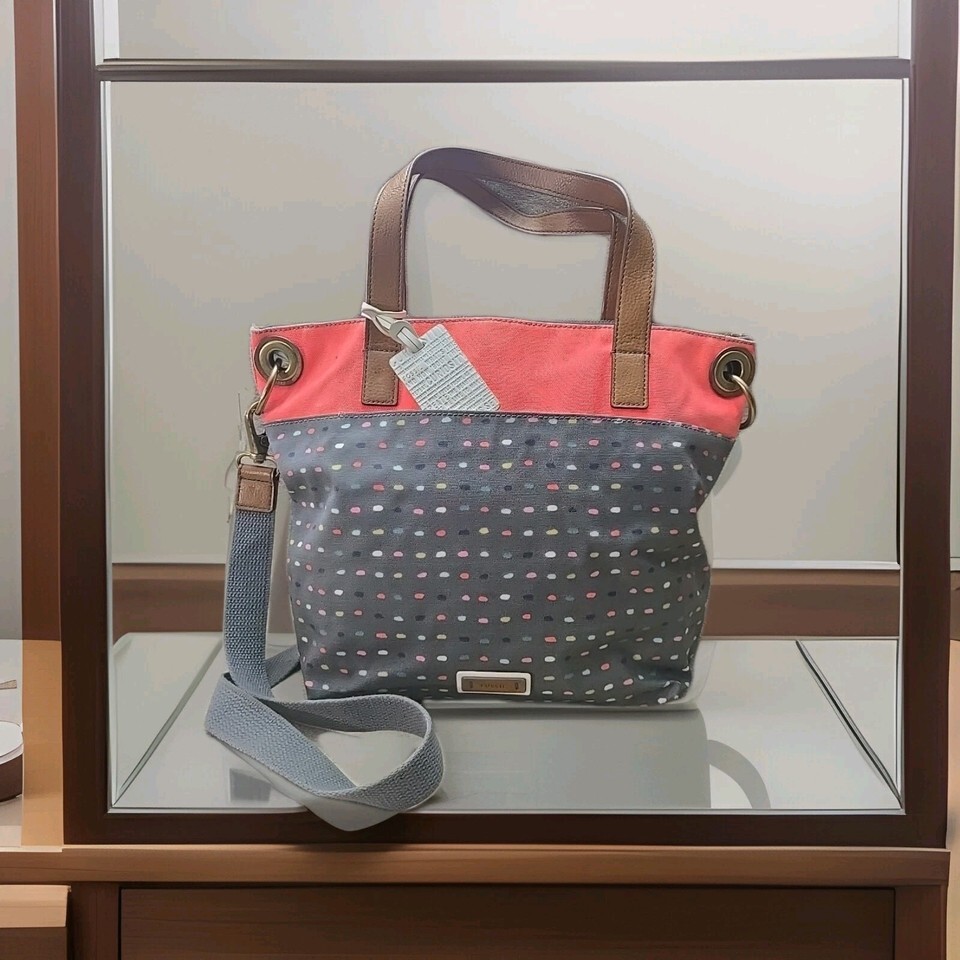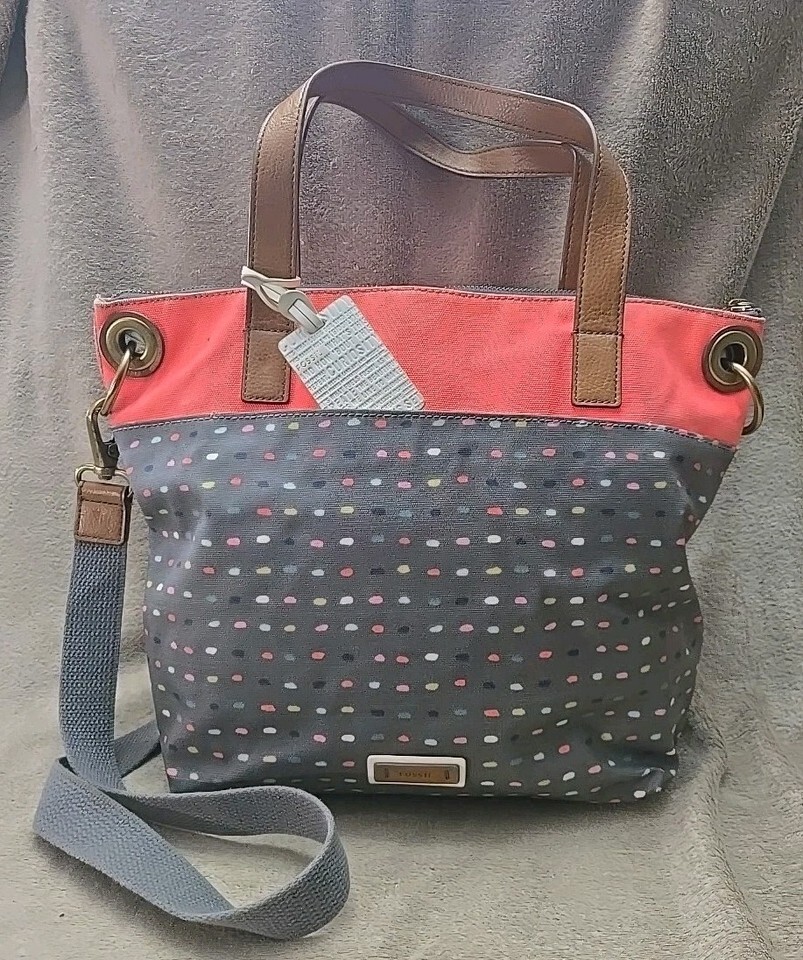 Fossil Keely Crossbody Shoulder Bag Pink Gray Multi Color Dot Double Handle