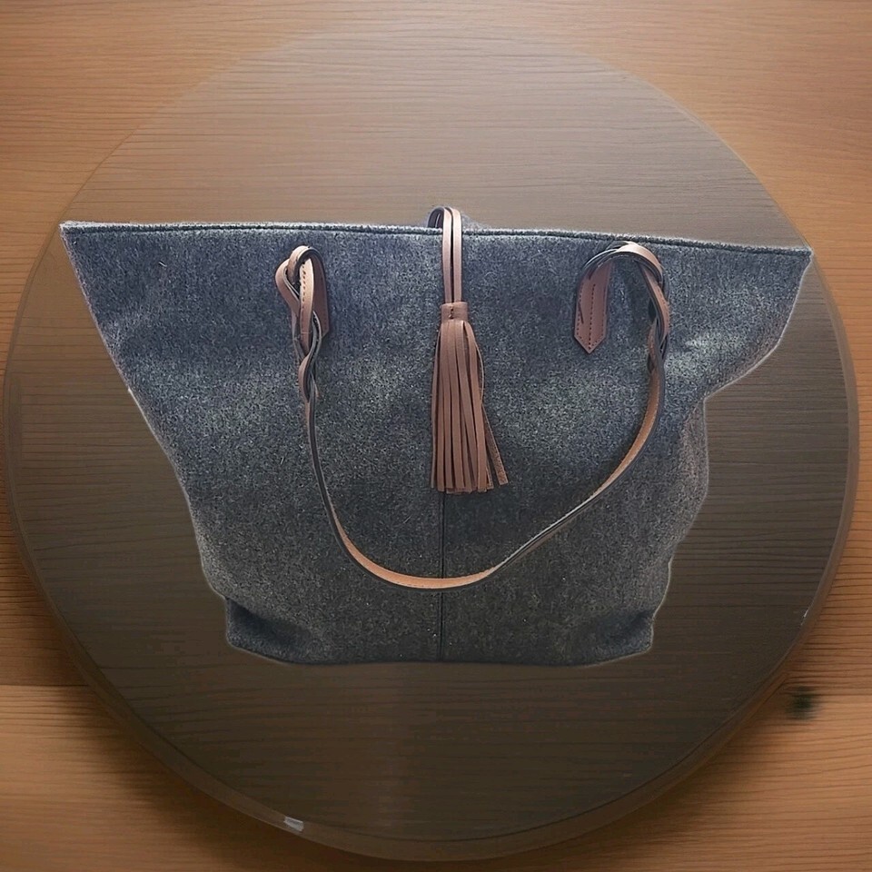 Braided Bohemian Tote Bag Large Gray Shoulder Purse Travel Will & Faux Leather