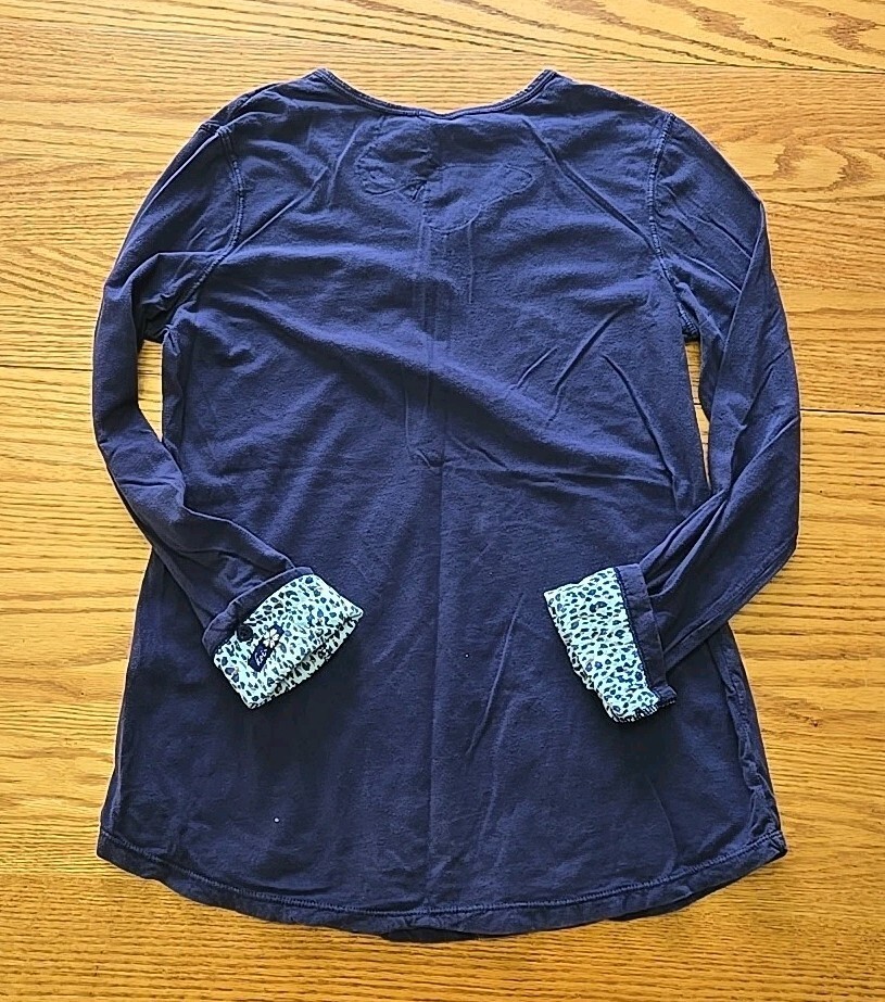 Koi Y2K Long-Sleeve Top Womans Size Medium Navy Blue Cheetah Cuffed S3