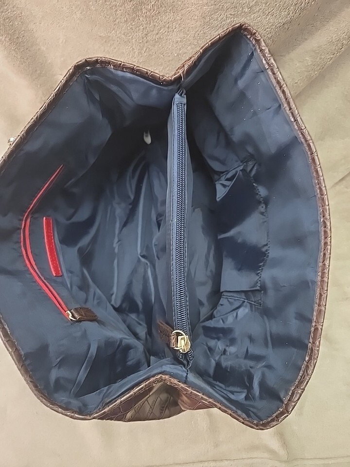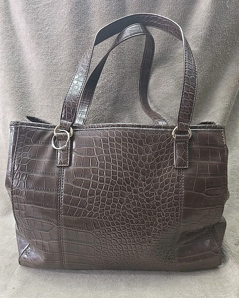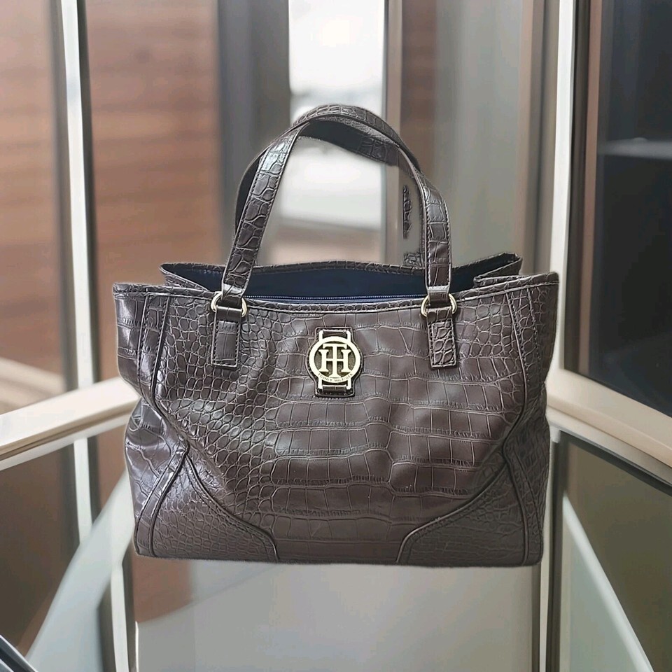 Tommy Hilfiger Brown Faux Leather Reptile Pattern Tote Hand Shoulder Bag