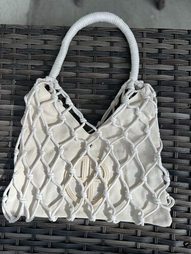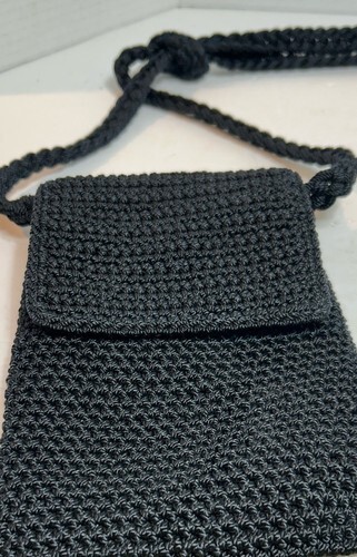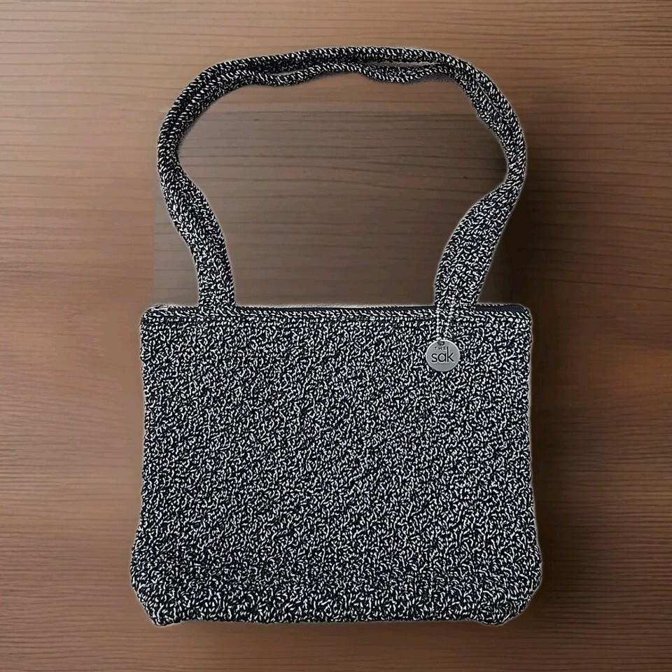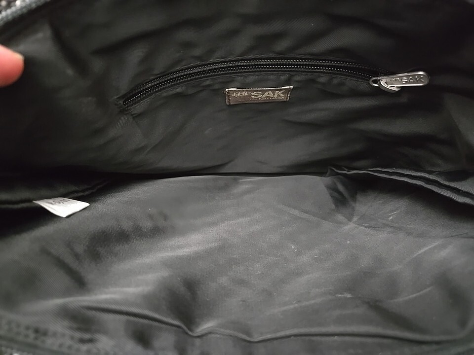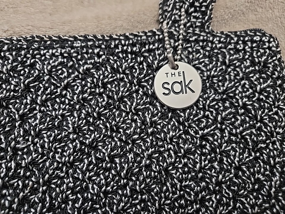 The Sak Tote Woven Crossbody Bag Black Tweed Crochet Boho Hobo Satchel Purse