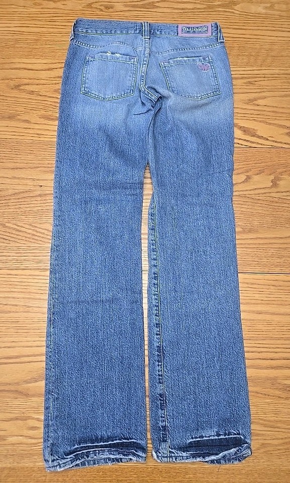 The Tara Jarmon Vintage 90s Jeans in Women's Size 3 feature a straight leg style with a low rise and pink bow accents, perfect for adding a touch of Y2K flair to your outfit. Made from 100% cotton denim with a light wash, these jeans have a 5-pocket design and a 32-inch inseam, making them versatile for all seasons. The vintage design and designer theme give these jeans a unique and stylish look, ideal for those who appreciate retro fashion and timeless style.
