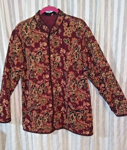 Koos of Course Reversible Jacket Womans Size Small Purple Floral/Black Vinyl