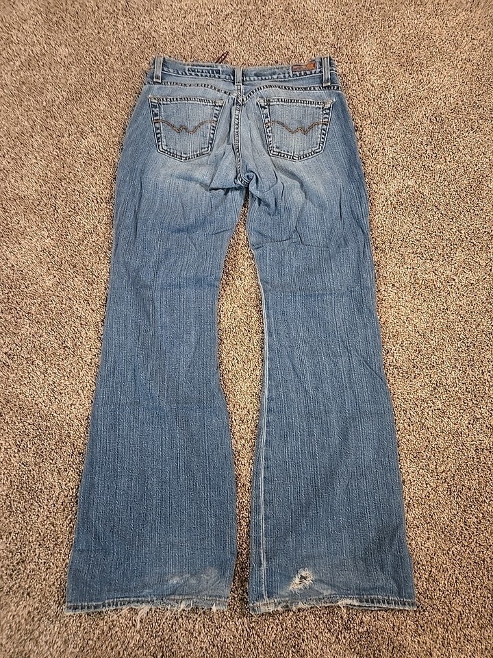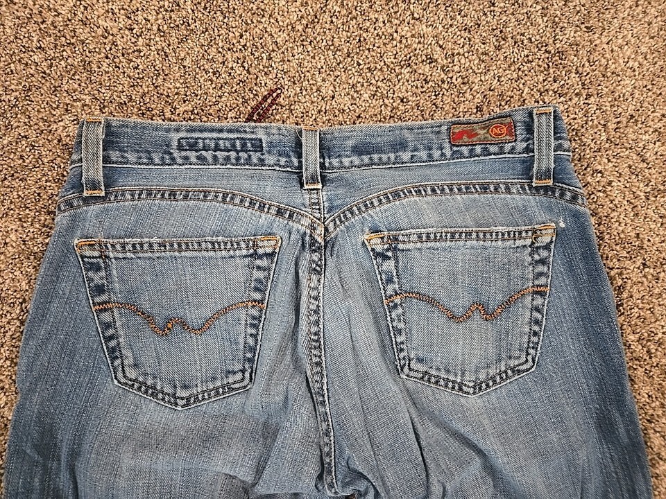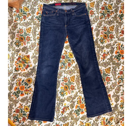 The product is a pair of Adriano Goldschmied Vtg Y2K The Legend Low Rise Flare Jeans in a woman's size 28. These jeans feature a zip closure, denim fabric, a low rise, and a flared style. They also have a logo accent, a 5-pocket design, stretch fabric, and a solid blue color. Made in the United States, the jeans are part of the AG Adriano Goldschmied The Legend product line and are designed with a regular fit for a comfortable and stylish look. Perfect for all seasons, these jeans are a trendy choice for any fashion-forward individual looking for a unique and standout piece.