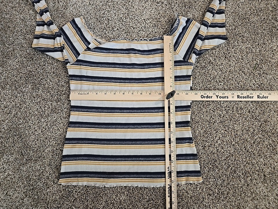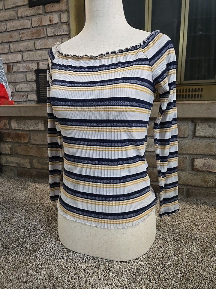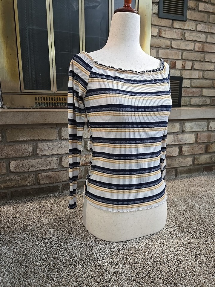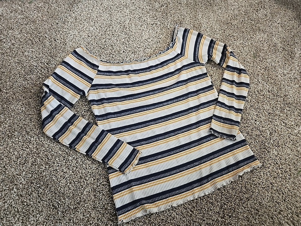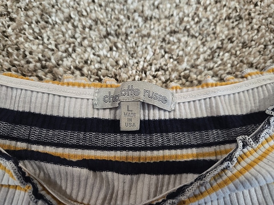 Charlotte Russe Vtg Y2K Off Shoulder Striped Ribbed Top Womans Sz Large Ruffled