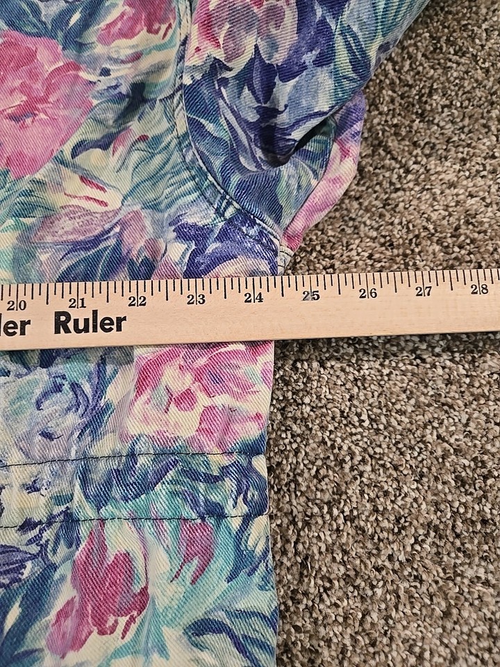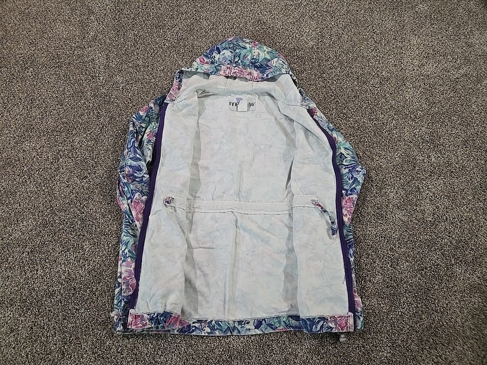 The Inner View Vtg 90s Oversized Floral Jacket in women's size medium is a stylish and comfortable addition to any wardrobe. Made of 100% cotton with a denim fabric type, this mid-length jacket features a variety of colorful floral patterns, perfect for a casual occasion in the fall or spring. The relaxed fit and drawstring accents add a touch of charm, while the zip and snap closure ensures ease of wearability. With its vintage appeal and outdoor theme, this cottagecore-inspired jacket is a unique and versatile piece that can be machine washed for convenience.
