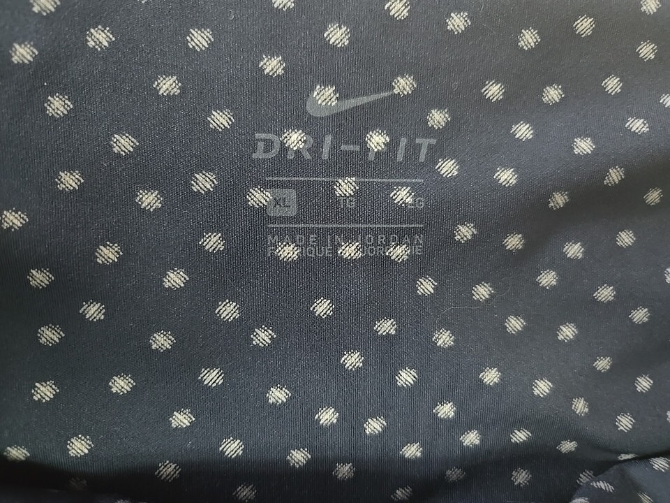 The Nike Twist Yoga Pants in women's size XL are a stylish and comfortable option for activewear. Featuring a blue polka dot pattern, these stretchy leggings offer a pull-on closure and are made from a blended fabric of polyester and spandex. Designed for yoga and other athletic activities, these athletic fit pants are machine washable and perfect for year-round wear. The colorful and athleisure-themed Nike Yoga pants are ideal for women looking for both style and functionality in their activewear wardrobe.