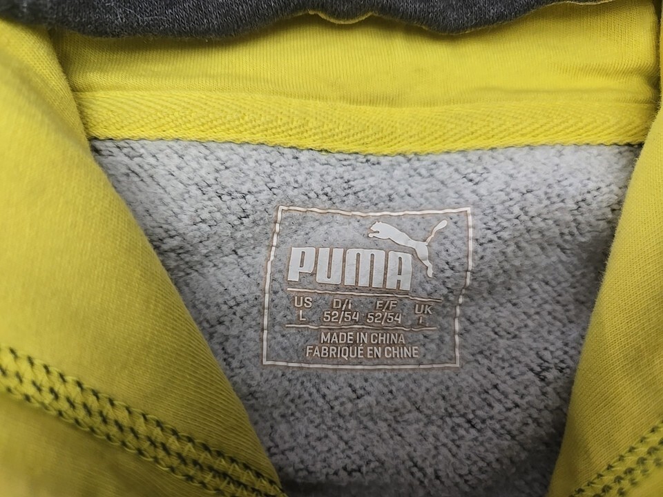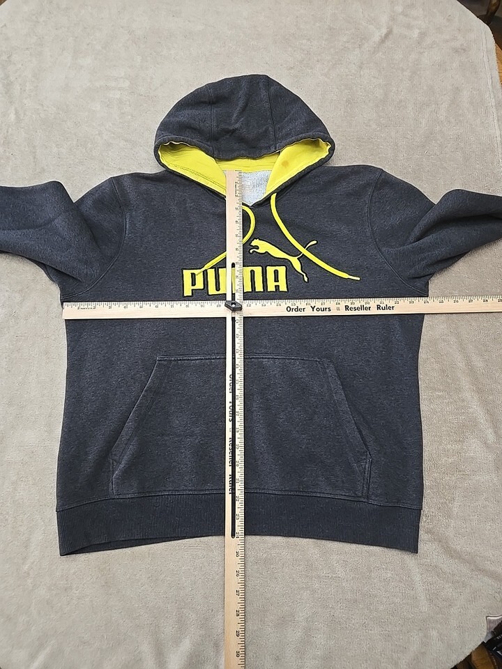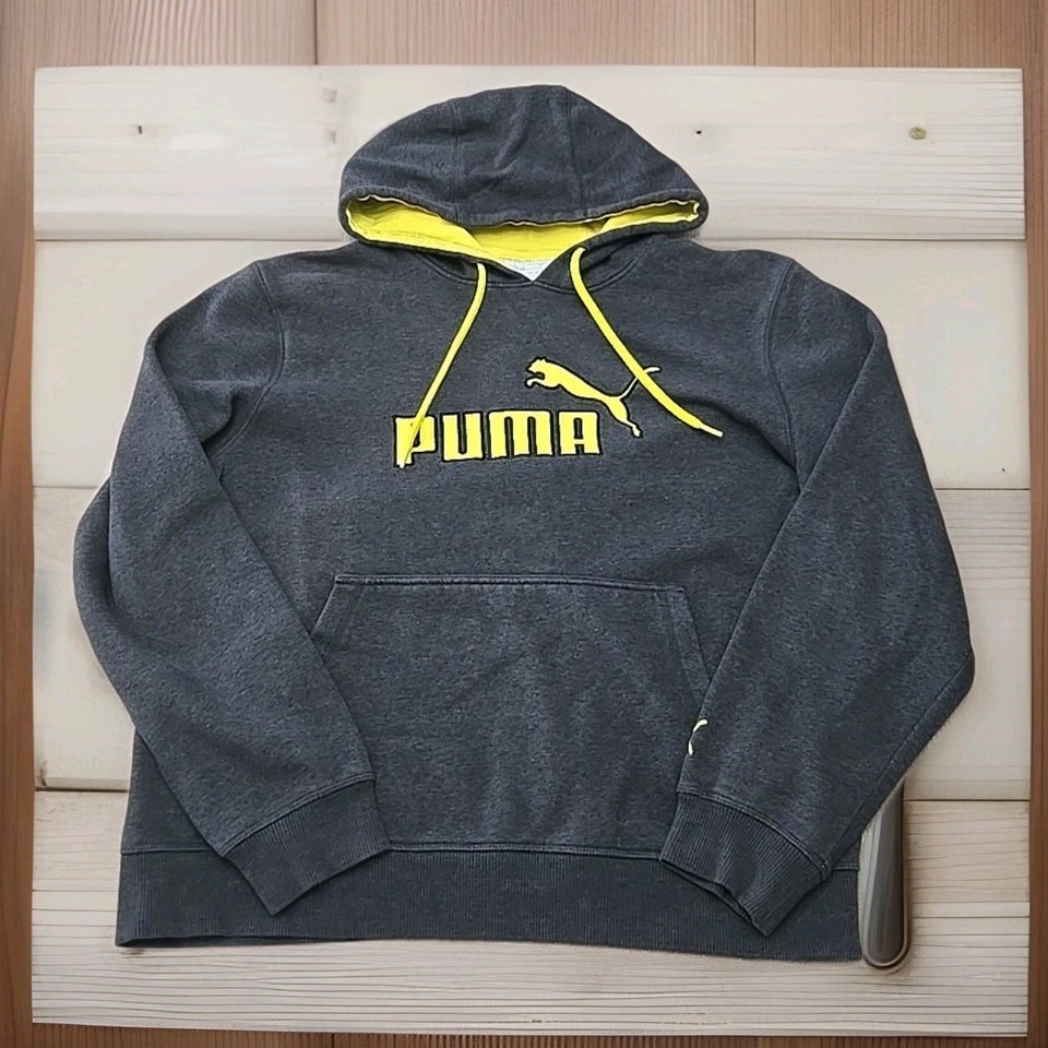 PUMA Logo Hoodie Dark Gray/Yellow Mens Size Large F1