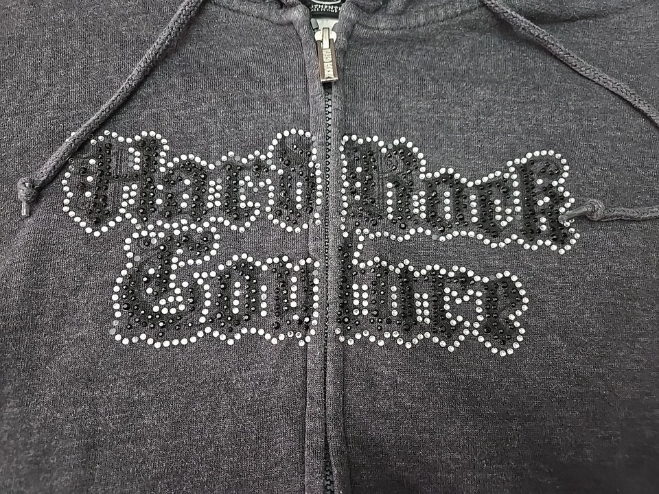Hard Rock Cafe Coutre Y2K Full Zip Hooded Sweatshirt Womans Sz Large Gray Music