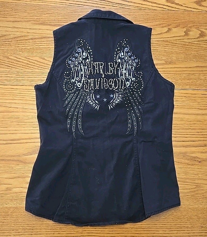 Harley Davidson Black Denim Vest Womans Size and similar items