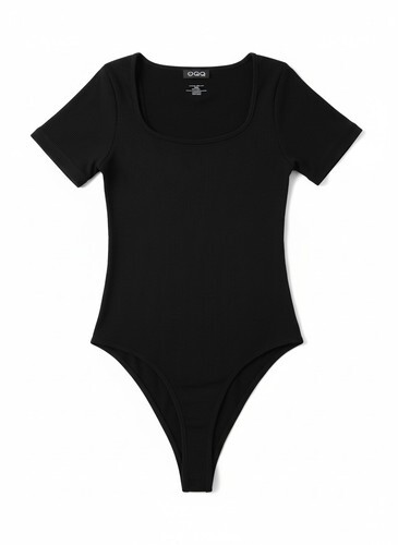 Look sleek and chic in this OQQ ribbed bodysuit. The scoop neck and wide strap design make it perfect for travel and casual occasions. This sleeveless tank top is made of nylon and spandex, making it lightweight and stretchy. It features a snap closure and is available in a size XL.