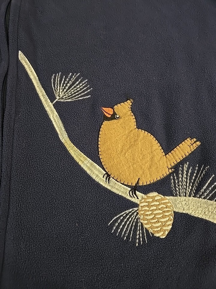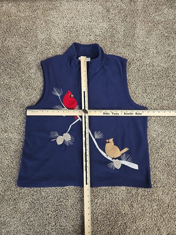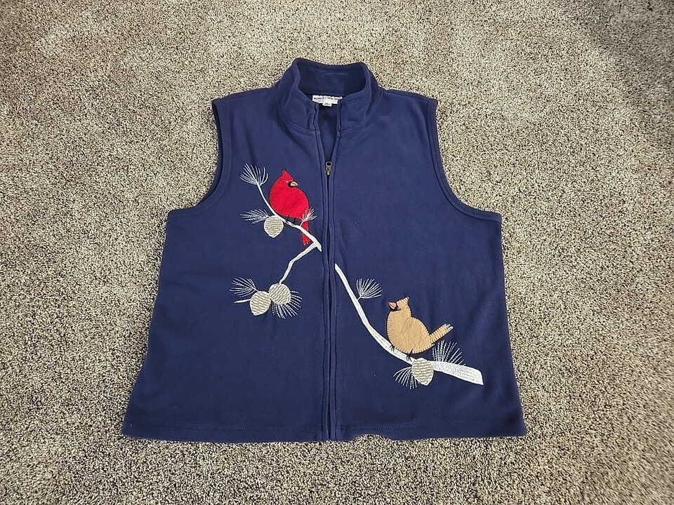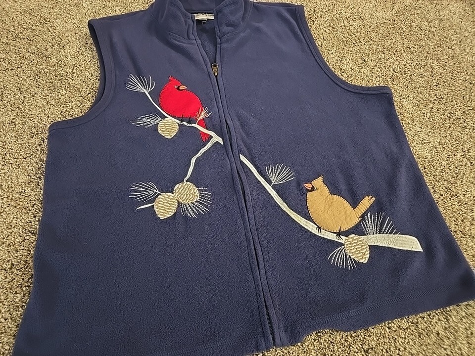 Rebecca Malone Cardinal Birds Fleece Vest Womans Sz XL Blue Christmas Holiday