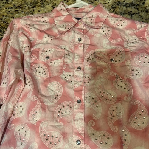 Wrangler Wrancher Pearl Snap Shirt Womans Sz XL Pink Paisley Western Rockabilly
