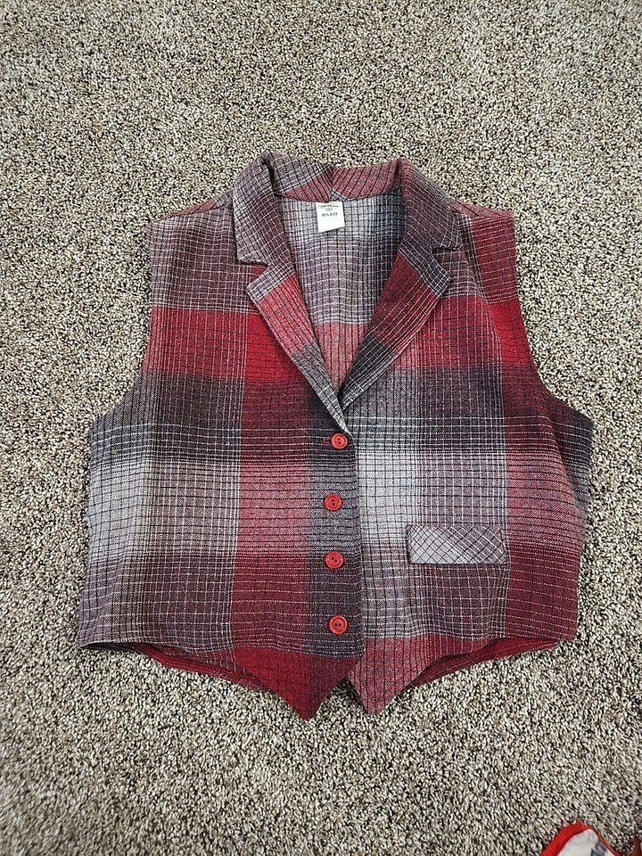 Unbranded Vtg 90's Plaid Button-Up Vest Womans Sz 13 Preppy Grunge Clueless Goth