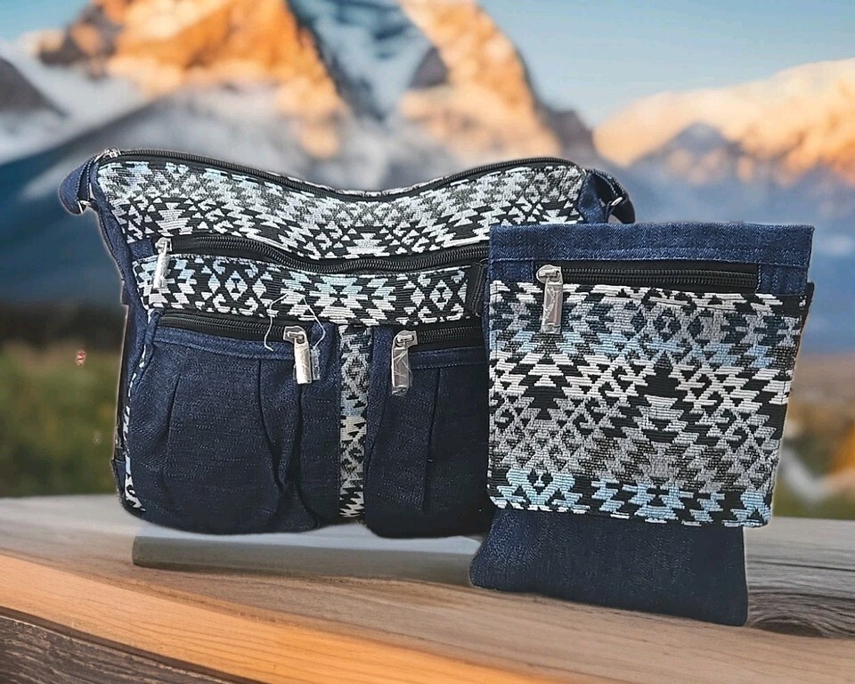 Canyon Sky 2-Piece Messenger Bag & CrossBody Purse Aztec Southwest Style Denim