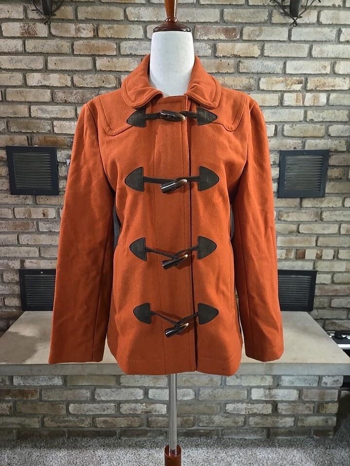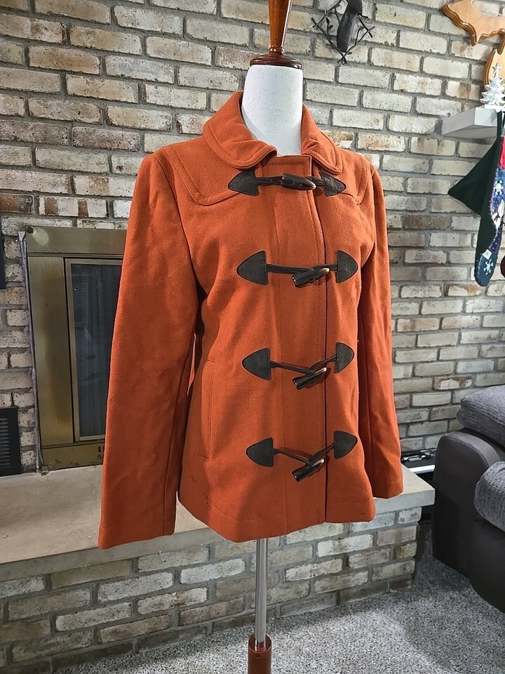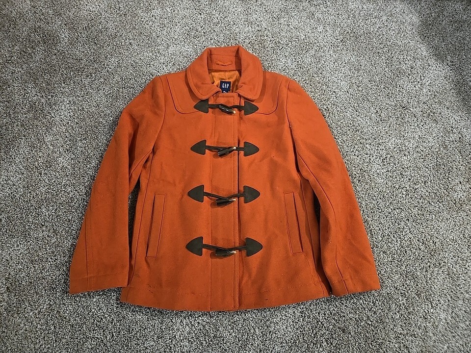 Gap 2008 Wool Blend Toggle Button Pea Coat Womans Sz Small Burnt Orange Outdoor