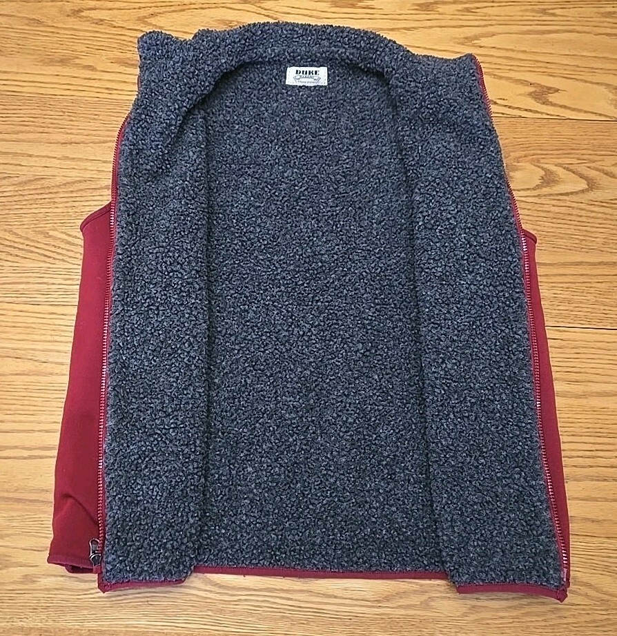 Duke Haband Fleece Vest Mens Sz Large Burgandy Gray Winter Sherpa Lined Full Zip